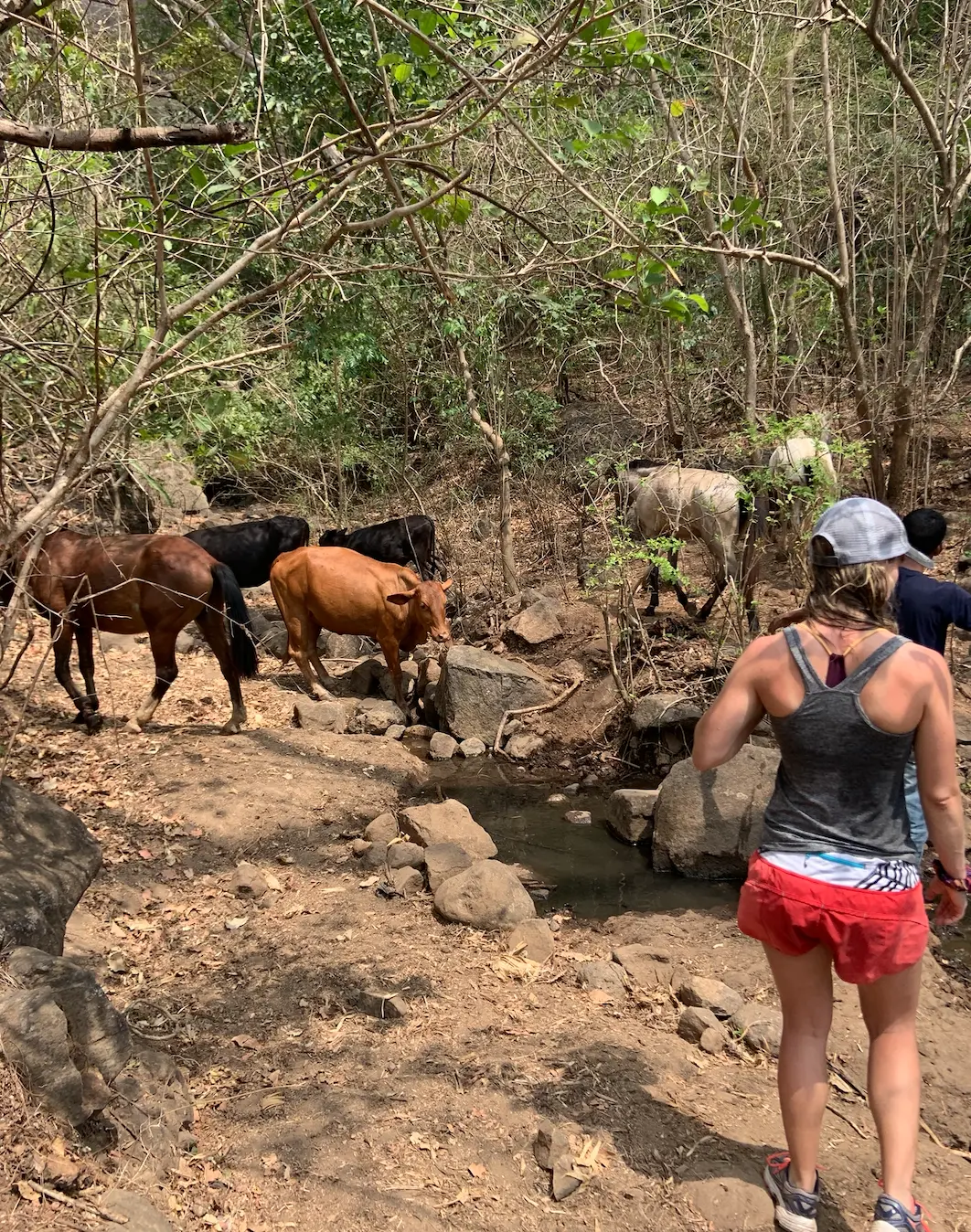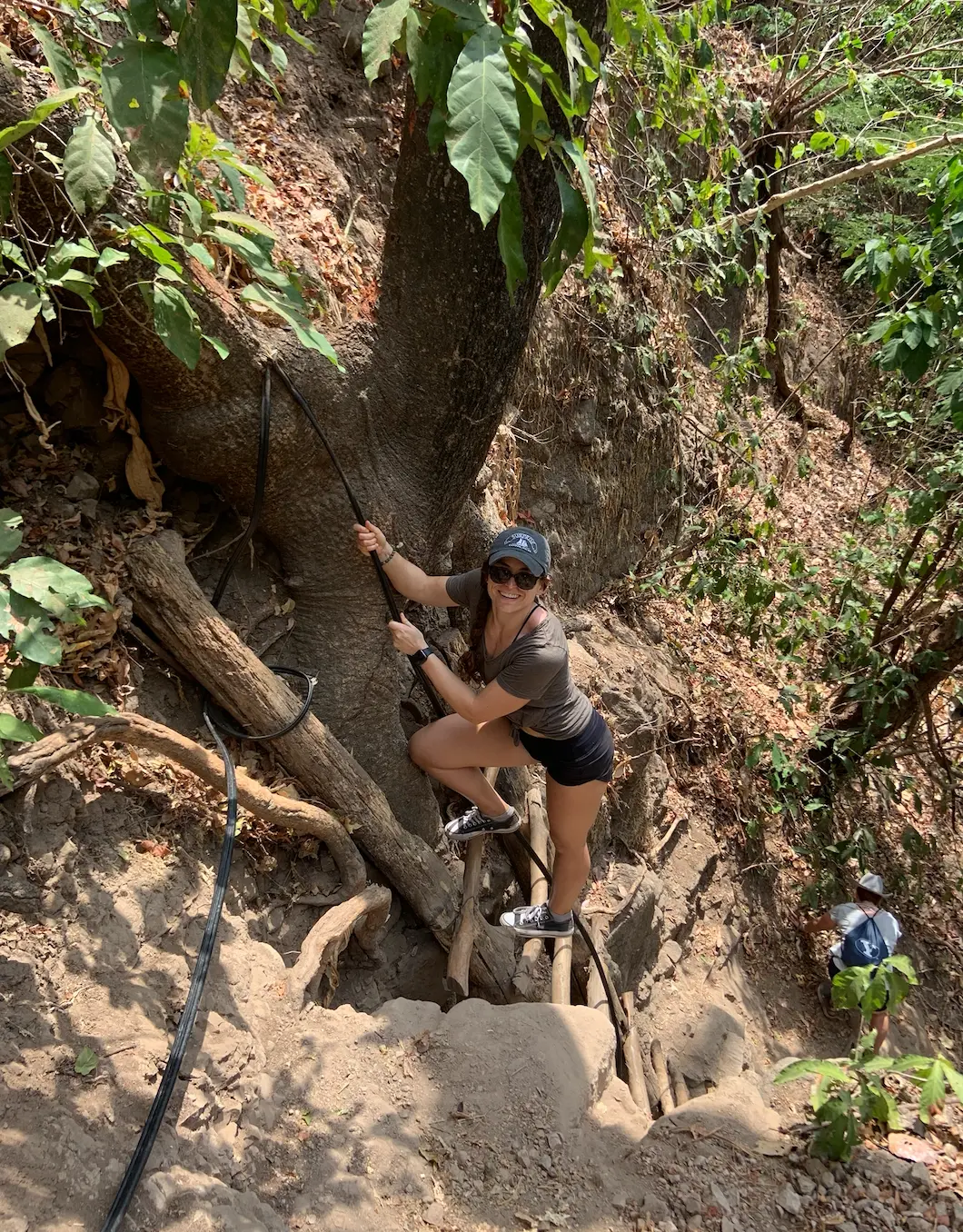 Aside from a shameless overindulgence in pupusas, which cost about $1 each from the most expensive places, we had an exceedingly healthy vacation. Most days included both yoga and a bodyweight workout. We took a long hike one day which was sold to us as "a nice hike with a waterfall at the end" which was actually a near-death experience. (Side note: lots of things in El Salvador are more exhilarating than usual. Including driving a motorcycle, ziplining and being instructed to use your hand and a leather glove as the brake system, swimming in an ocean with deceptively strong waves and a serious rip tide, and, as mentioned above, scaling the side of a mountain using a power line for balance.)