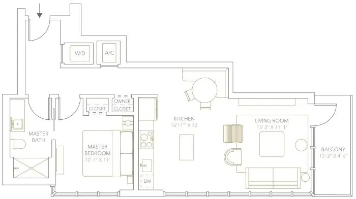The A2 floor plans are only one bedroom without a balcony. It starts at $510K and goes to $558K While there’s no balcony, there is a double vanity in the bathroom and then a nice size closet with the owner’s closet locked in there.